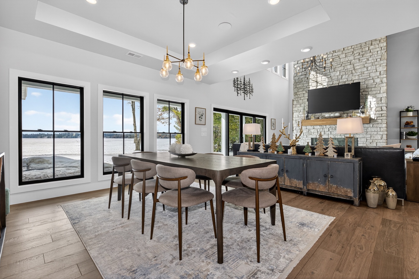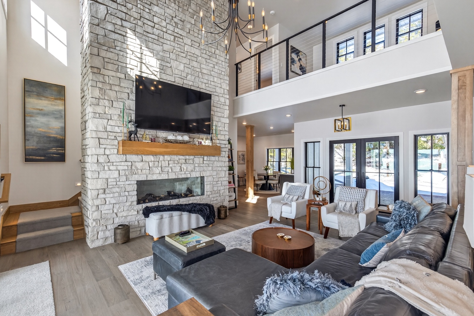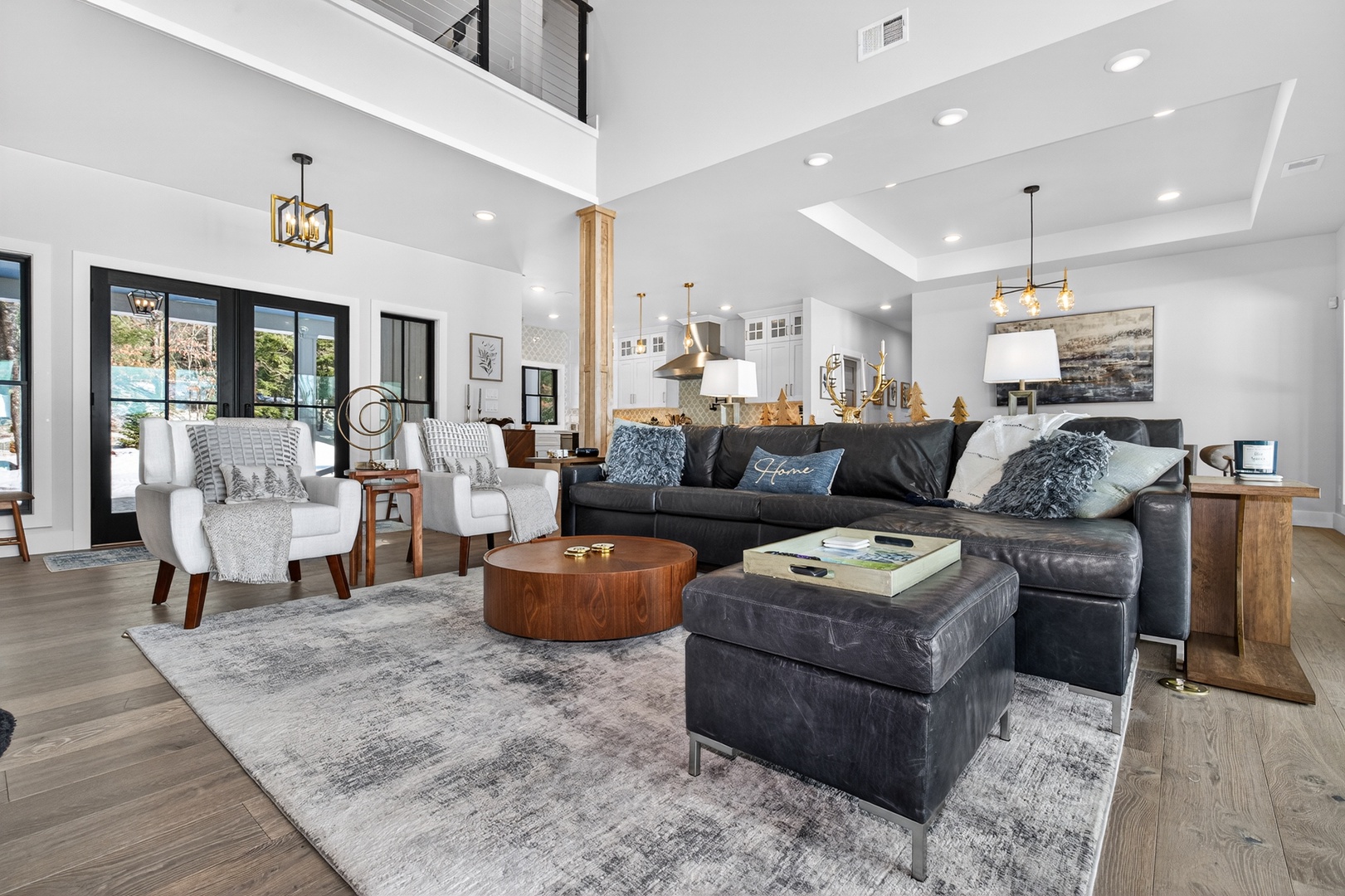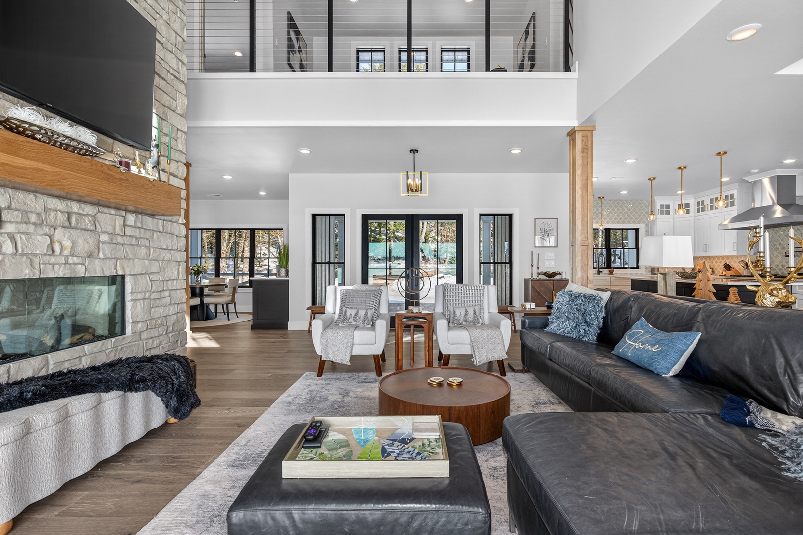 Prepare to be impressed as you walk up to Four Pines and see the glittering lake through the home’s floor to ceiling windows, before you even walk through the front door. Welcomed by cathedral ceilings and an open-concept floor plan, the great room and kitchen is the entertainment hub of the home. The kitchen is state-of-the-art, with new appliances, granite countertops, and everything you need to entertain guests while vacationing. Take a break in the dining area for cocktail hour or a sit-down dinner with your favorite vacation companions.