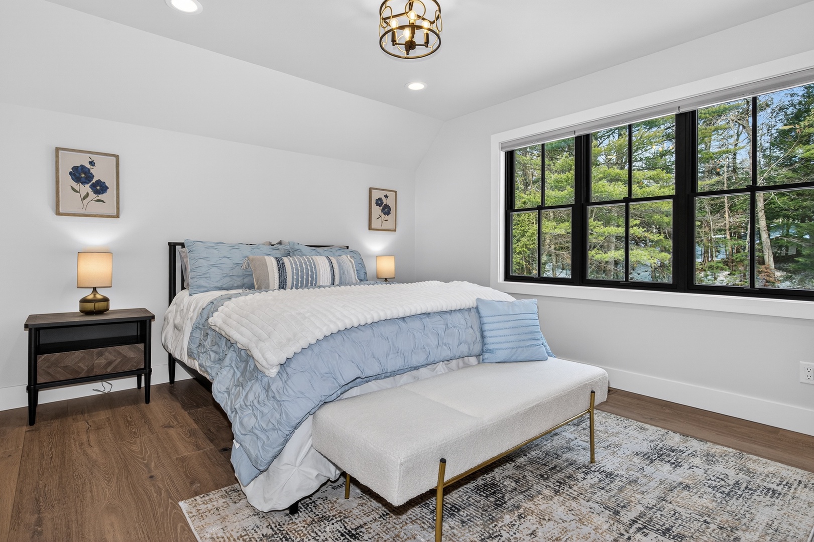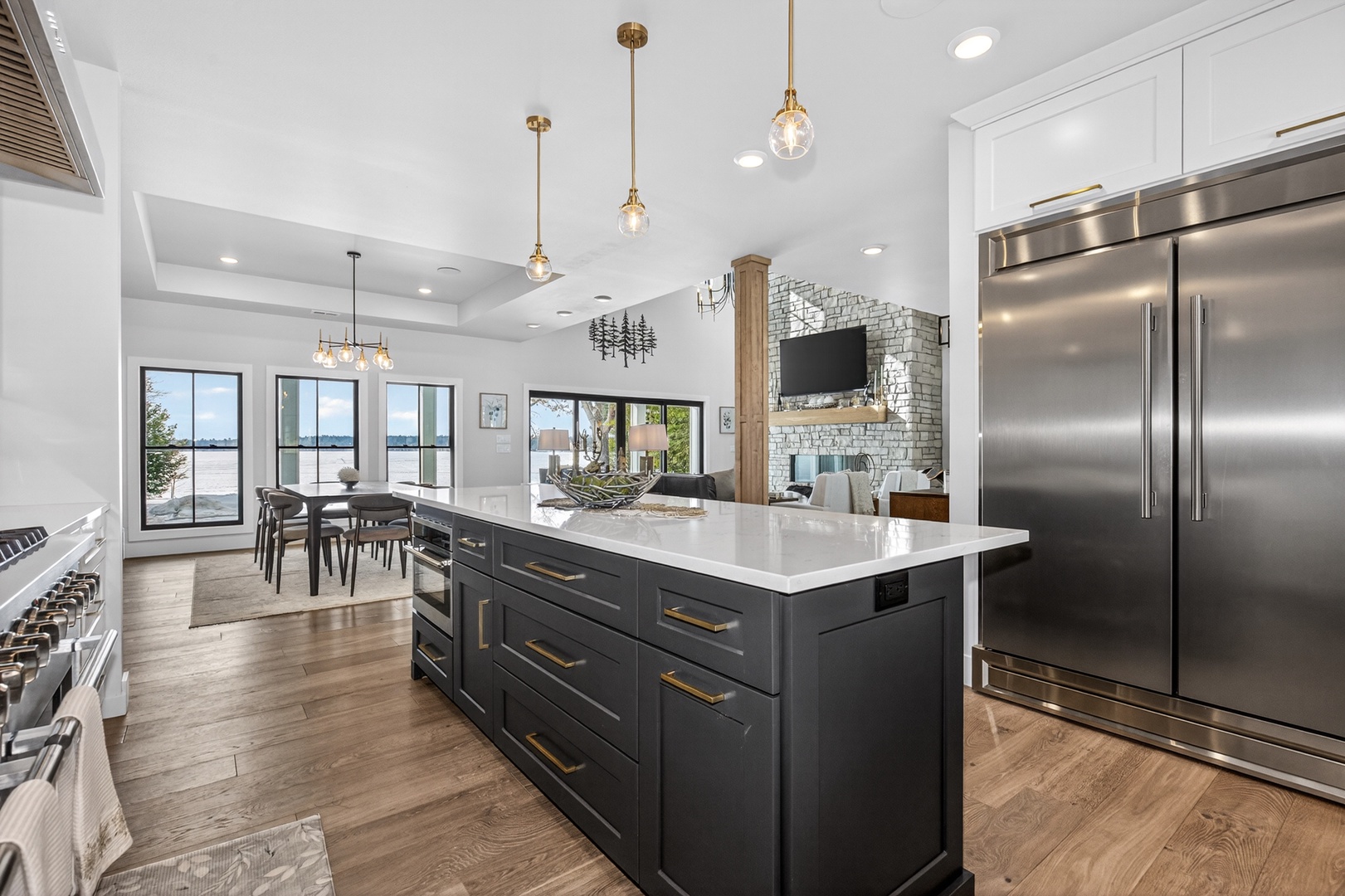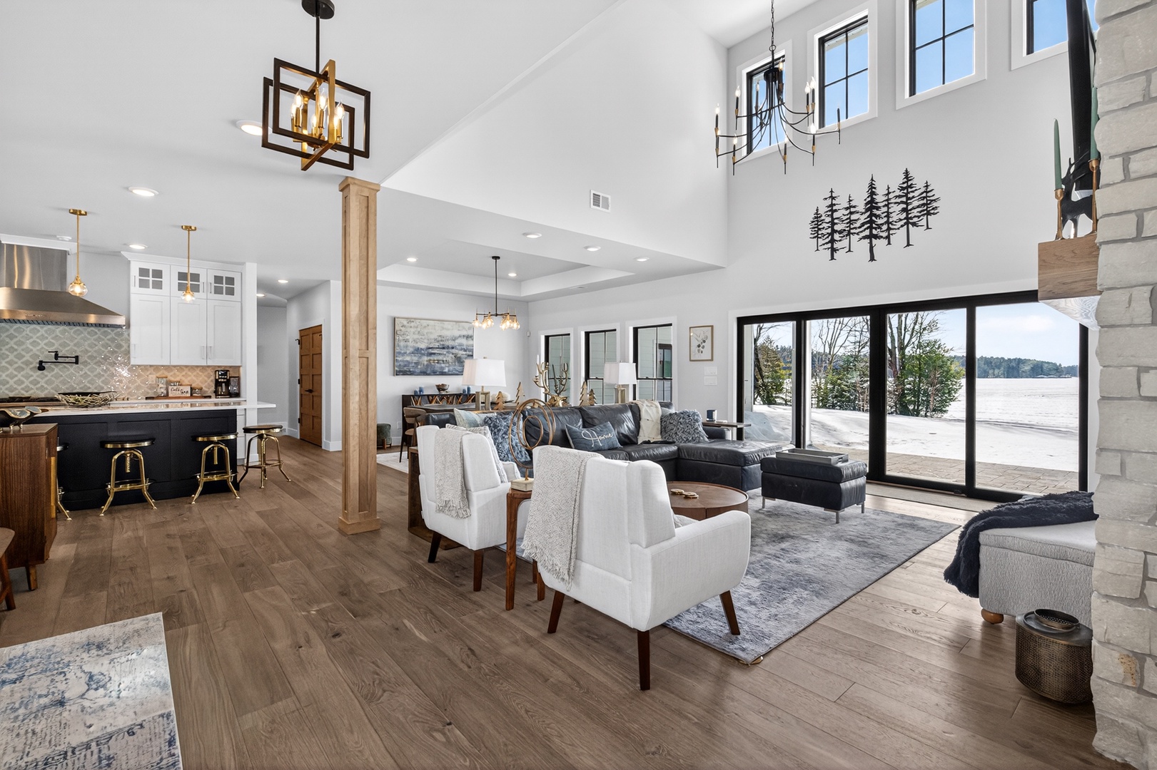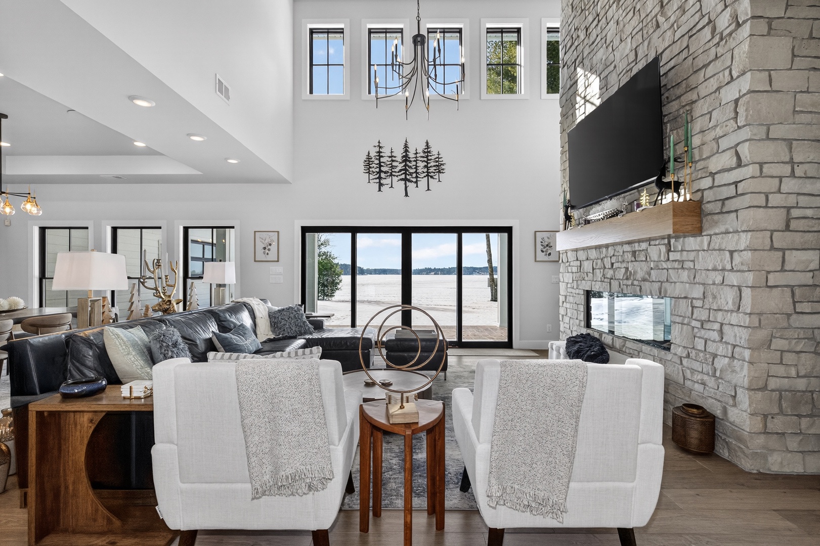 Prepare to be impressed as you walk up to Four Pines and see the glittering lake through the home’s floor to ceiling windows, before you even walk through the front door. Welcomed by cathedral ceilings and an open-concept floor plan, the great room and kitchen is the entertainment hub of the home. The kitchen is state-of-the-art, with new appliances, granite countertops, and everything you need to entertain guests while vacationing. Take a break in the dining area for cocktail hour or a sit-down dinner with your favorite vacation companions.