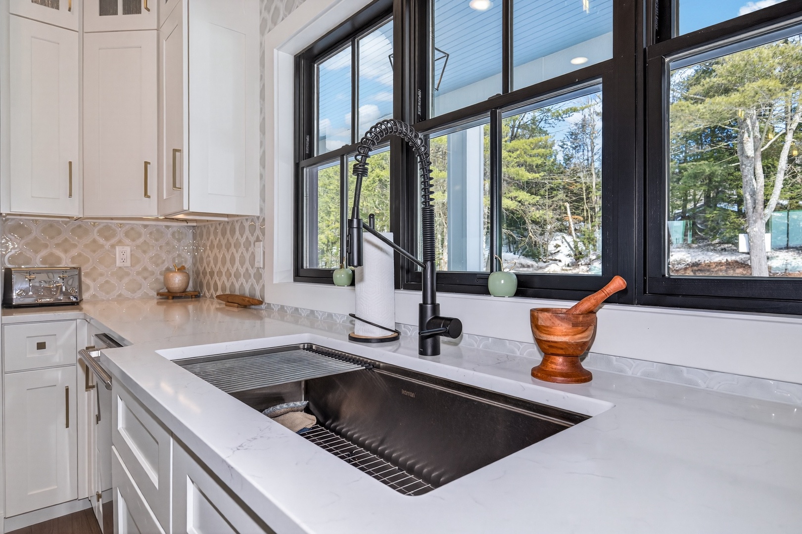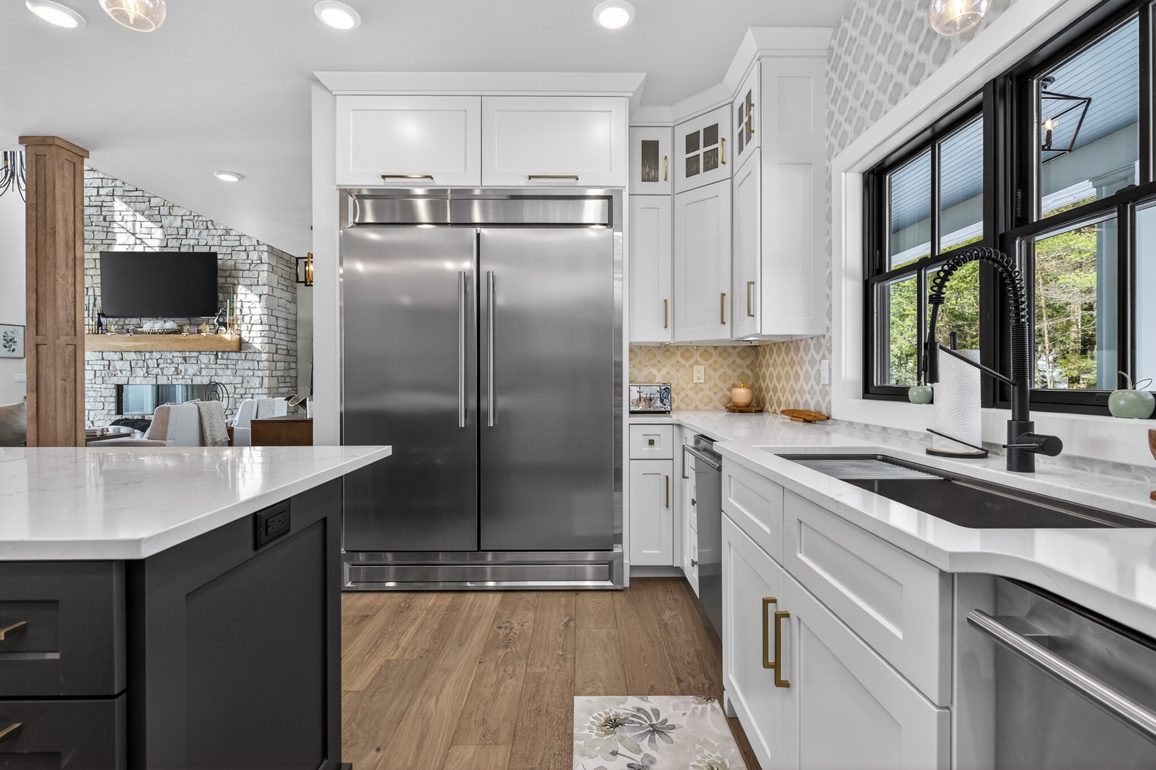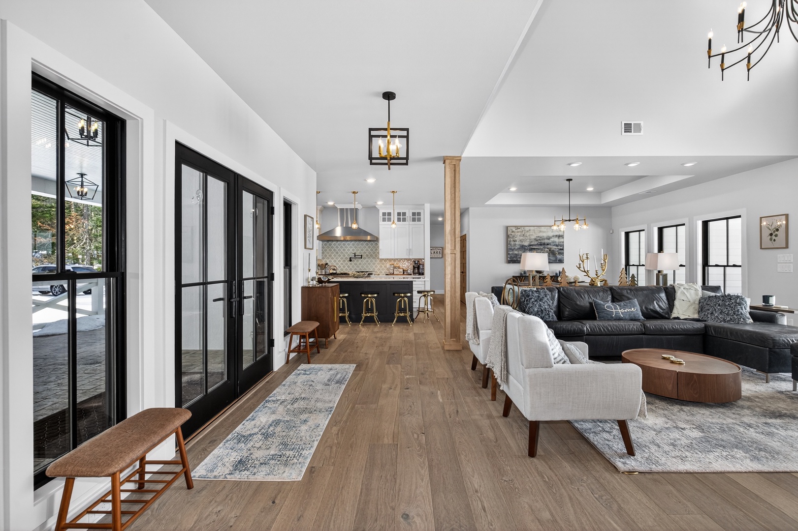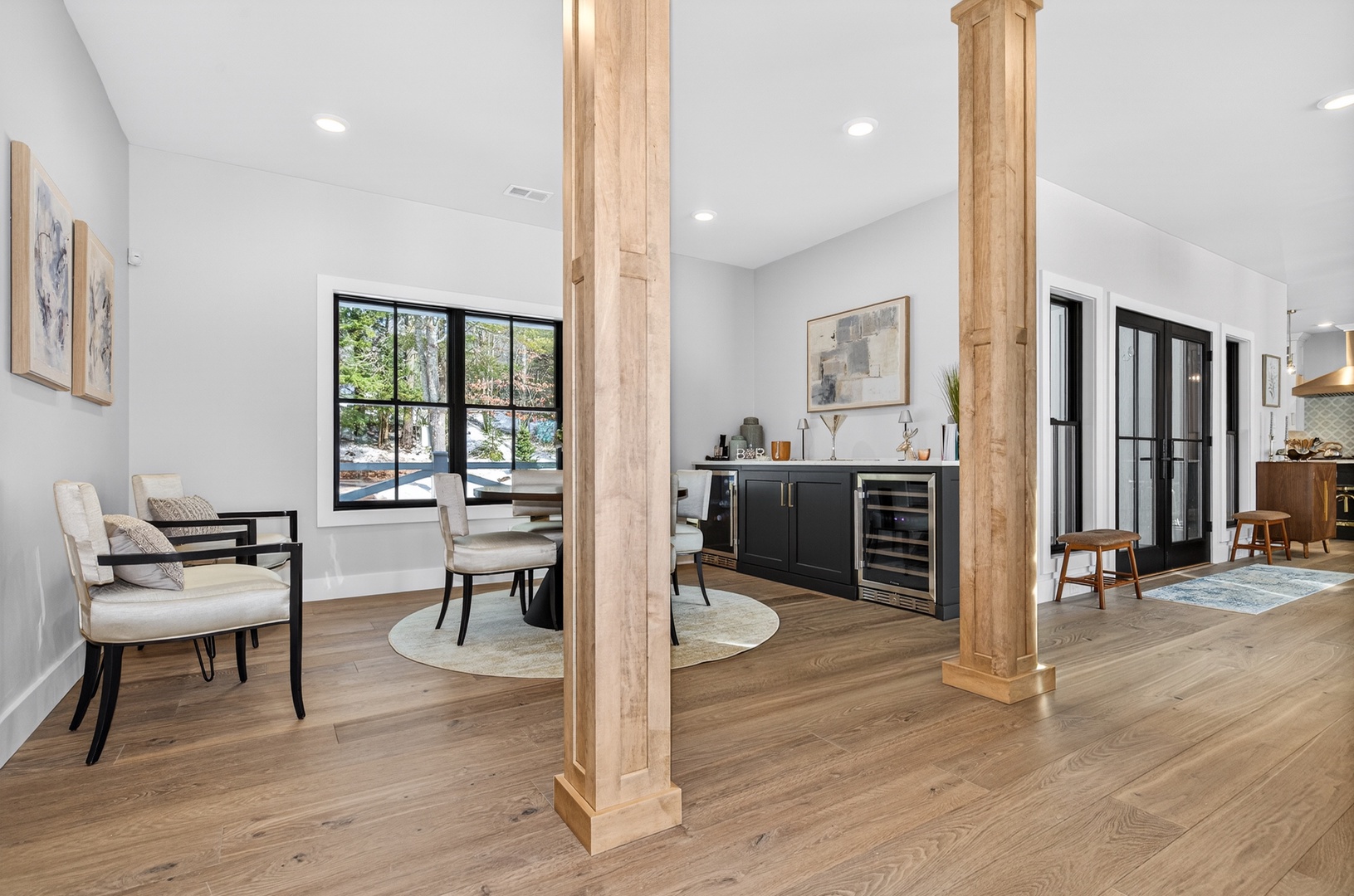 Prepare to be impressed as you walk up to Four Pines and see the glittering lake through the home’s floor to ceiling windows, before you even walk through the front door. Welcomed by cathedral ceilings and an open-concept floor plan, the great room and kitchen is the entertainment hub of the home. The kitchen is state-of-the-art, with new appliances, granite countertops, and everything you need to entertain guests while vacationing. Take a break in the dining area for cocktail hour or a sit-down dinner with your favorite vacation companions.