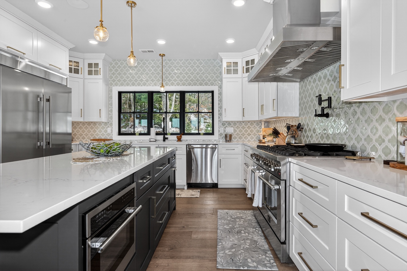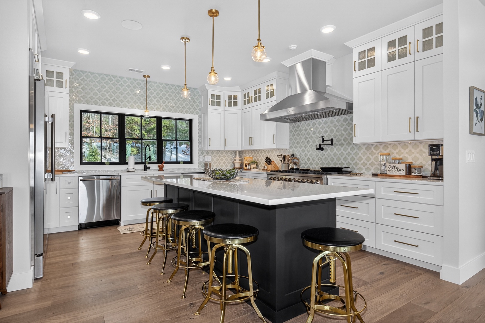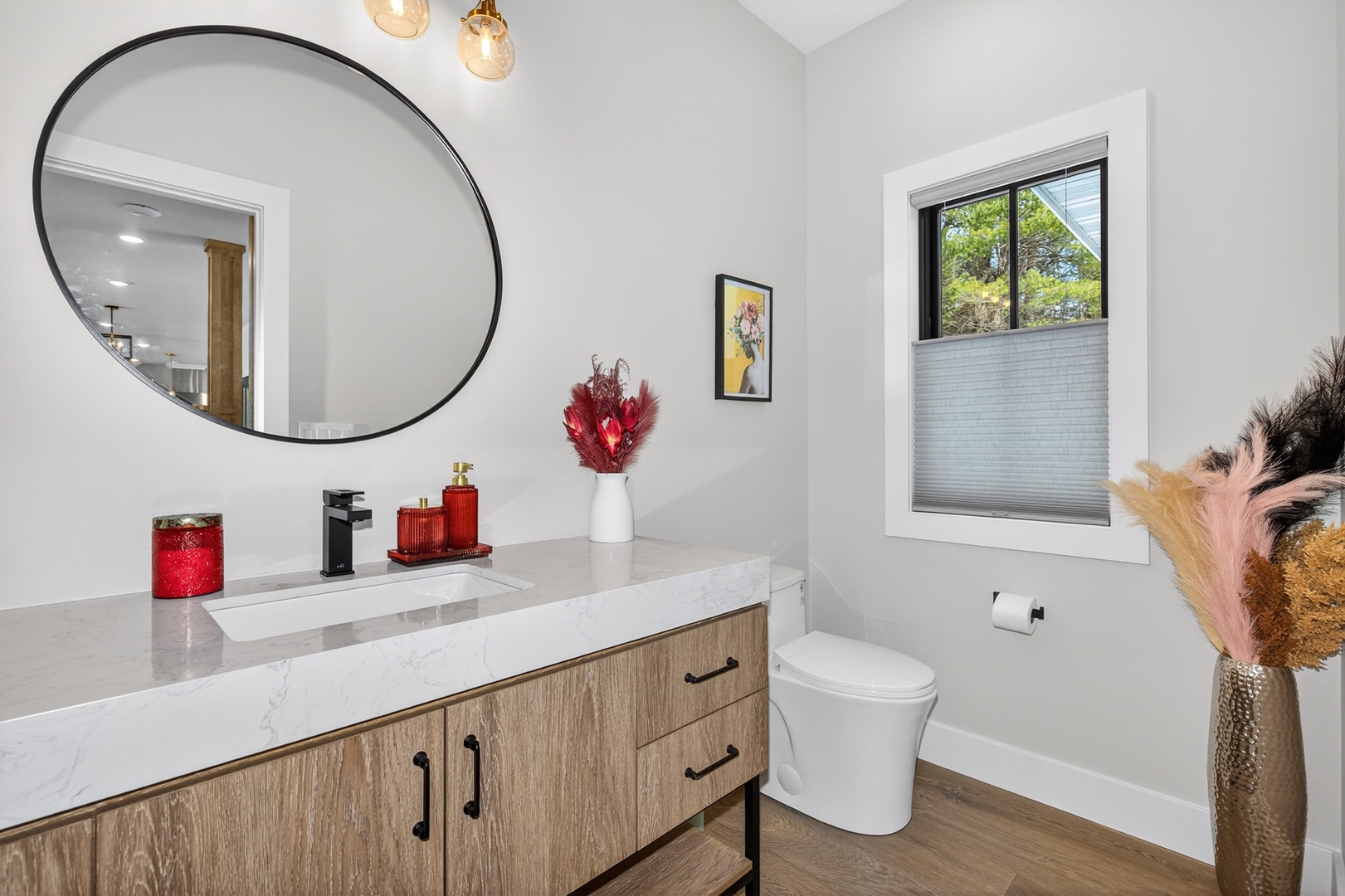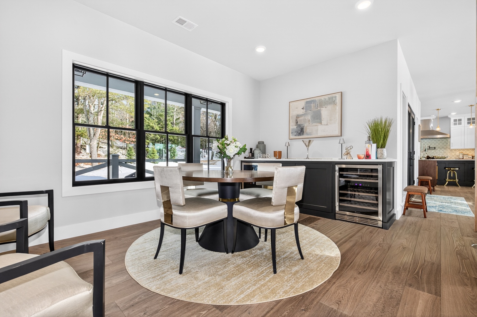 Prepare to be impressed as you walk up to Four Pines and see the glittering lake through the home’s floor to ceiling windows, before you even walk through the front door. Welcomed by cathedral ceilings and an open-concept floor plan, the great room and kitchen is the entertainment hub of the home. The kitchen is state-of-the-art, with new appliances, granite countertops, and everything you need to entertain guests while vacationing. Take a break in the dining area for cocktail hour or a sit-down dinner with your favorite vacation companions.