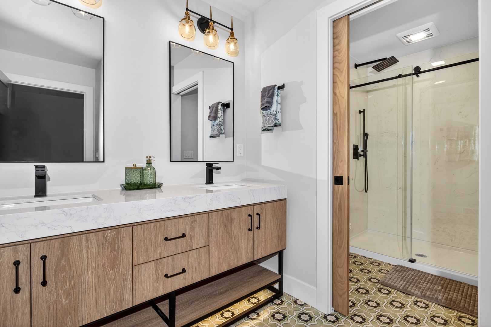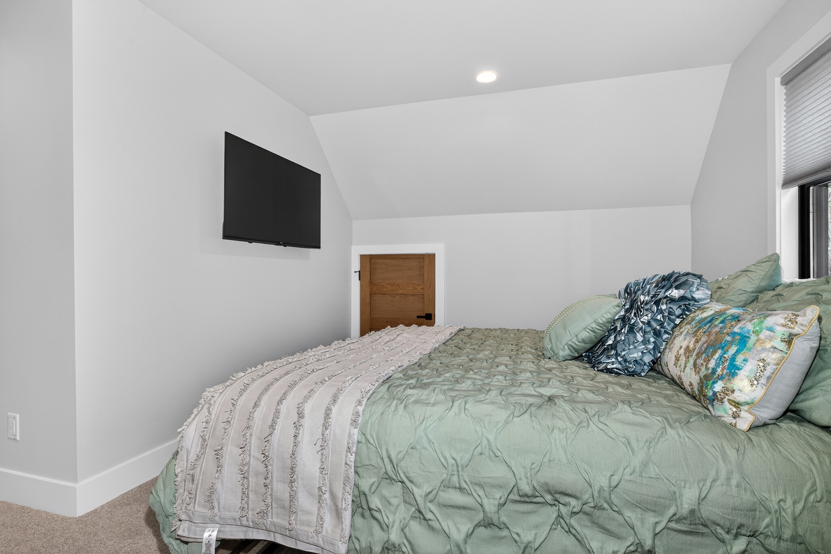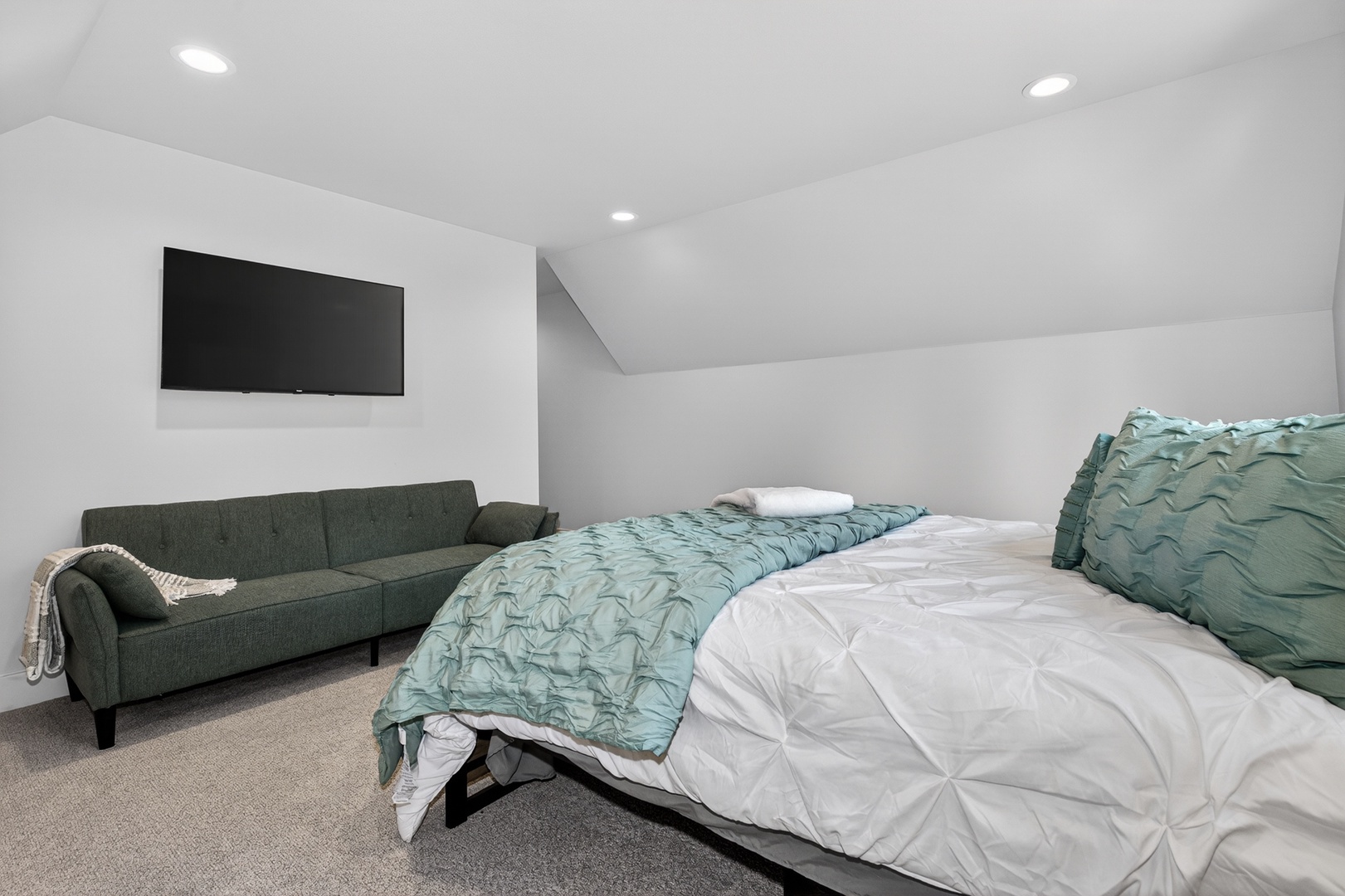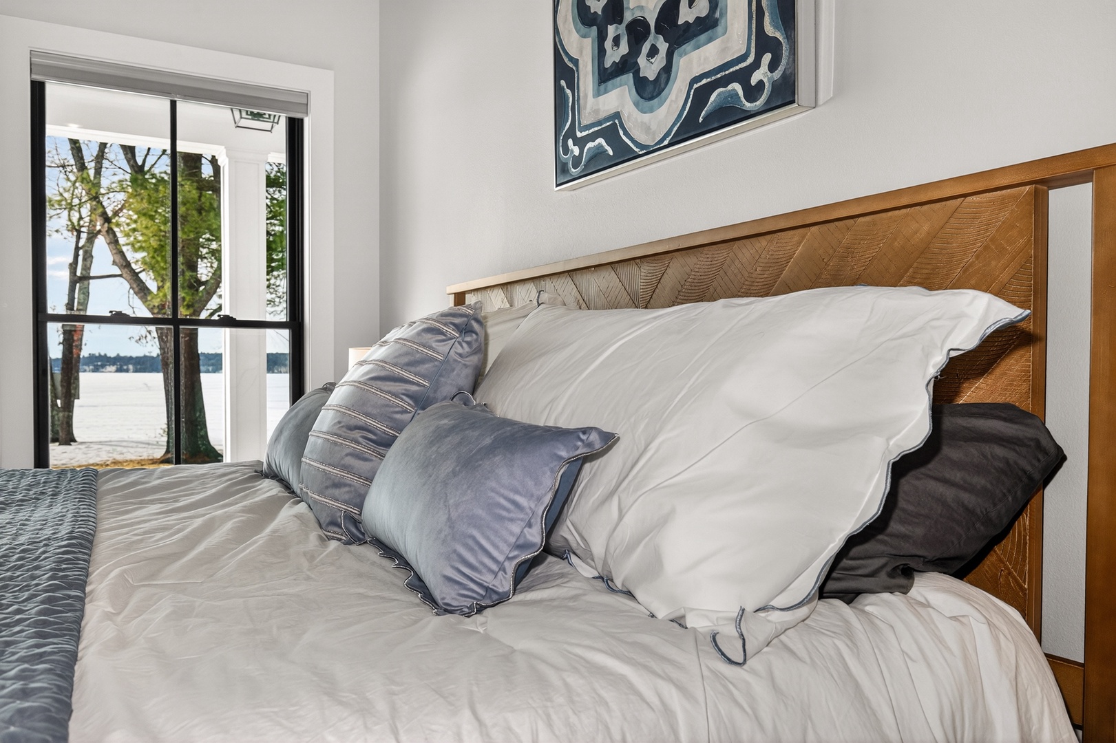 Four Pines at Maybelle Manor features 4 bedrooms and sleeping accommodations for up to 8 people; there is space for everyone on your invite list. Three of the four bedrooms are located on the upper level, all with luxurious queen beds and plenty of closet space for your vacation wardrobe. The loft connecting the bedrooms is open to the living room below and has a queen pull out sofa, the perfect space for young travelers to watch over the excitement of family gatherings. The owner suite on the main level provides dreamy views of Catfish Lake and a private exit to the covered porch outside. With an ensuite bathroom and walk-in closet, sweet dreams will come naturally while you vacation at the lake.