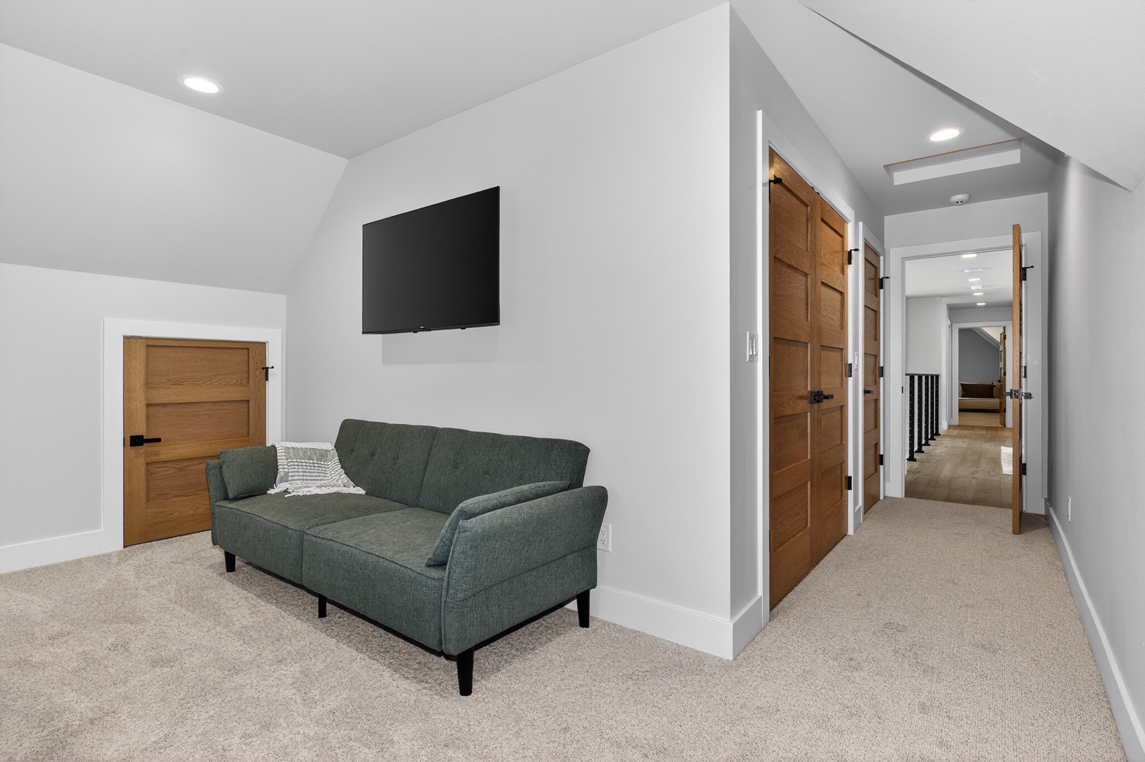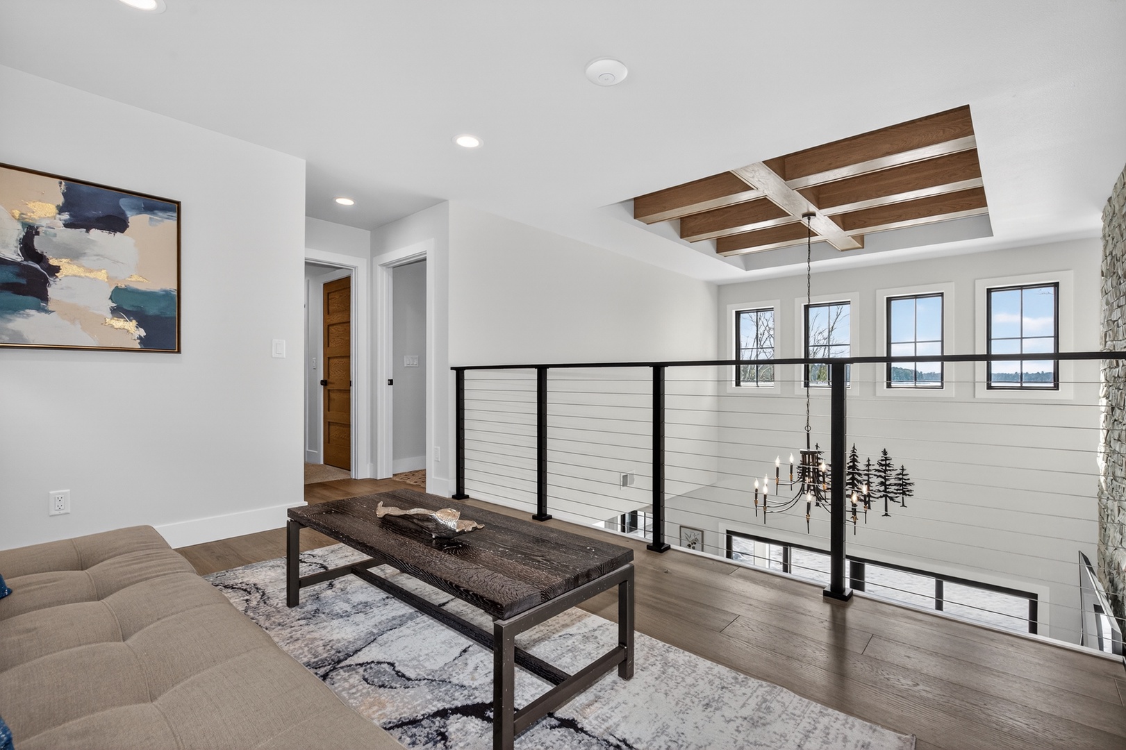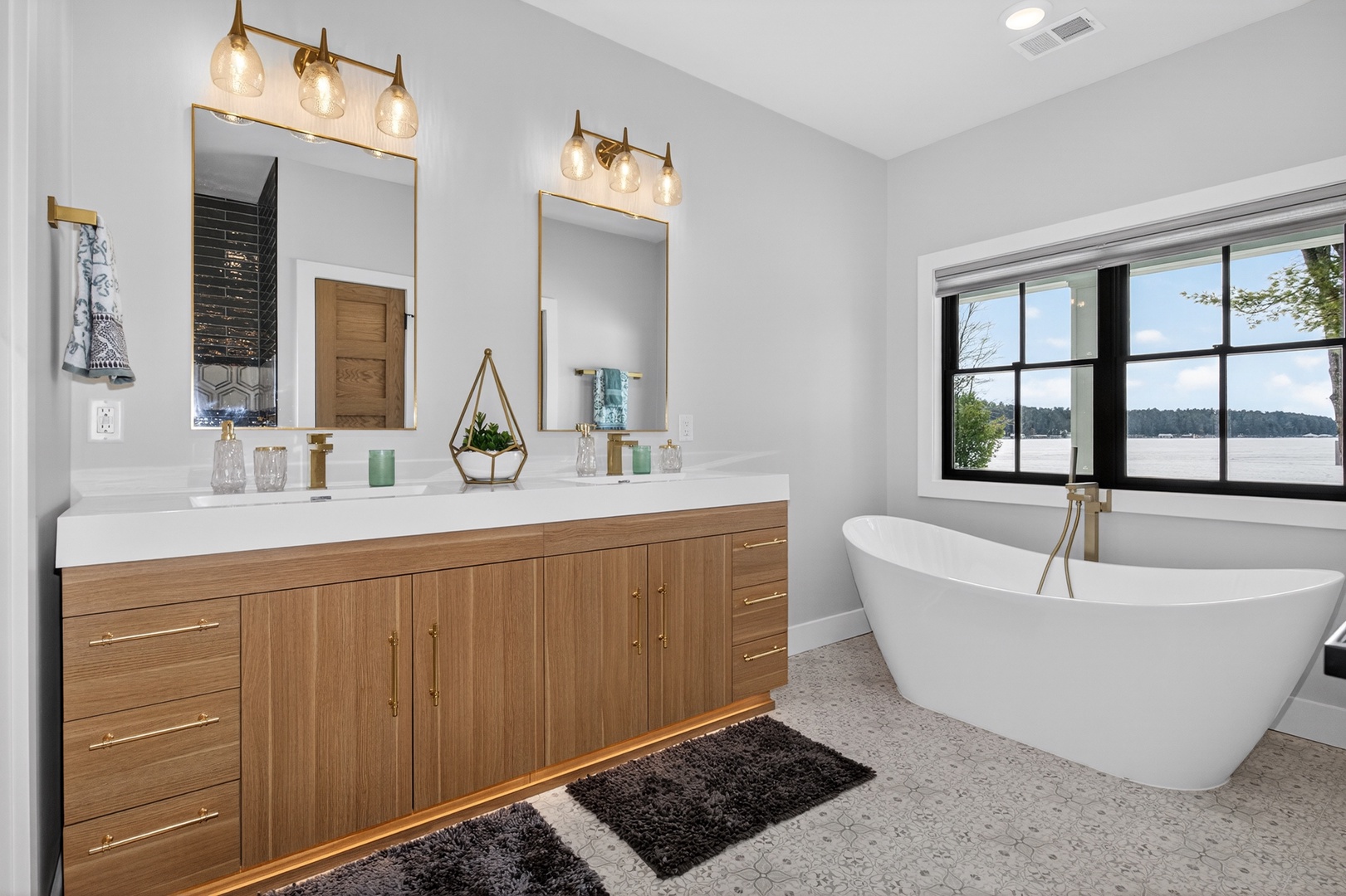 Four Pines at Maybelle Manor features 4 bedrooms and sleeping accommodations for up to 8 people; there is space for everyone on your invite list. Three of the four bedrooms are located on the upper level, all with luxurious queen beds and plenty of closet space for your vacation wardrobe. The loft connecting the bedrooms is open to the living room below and has a queen pull out sofa, the perfect space for young travelers to watch over the excitement of family gatherings. The owner suite on the main level provides dreamy views of Catfish Lake and a private exit to the covered porch outside. With an ensuite bathroom and walk-in closet, sweet dreams will come naturally while you vacation at the lake.
