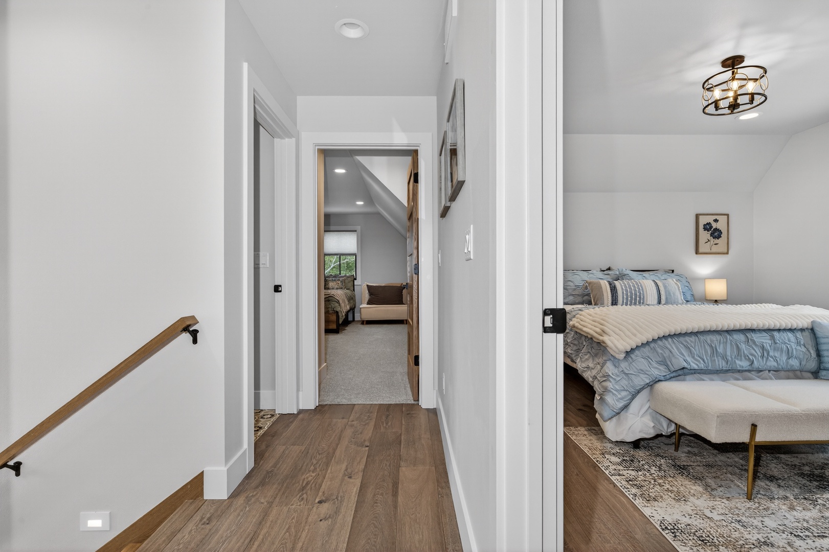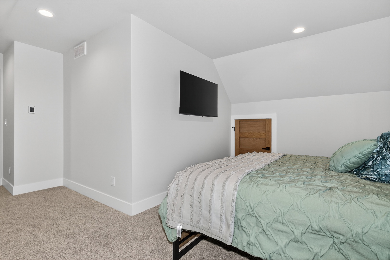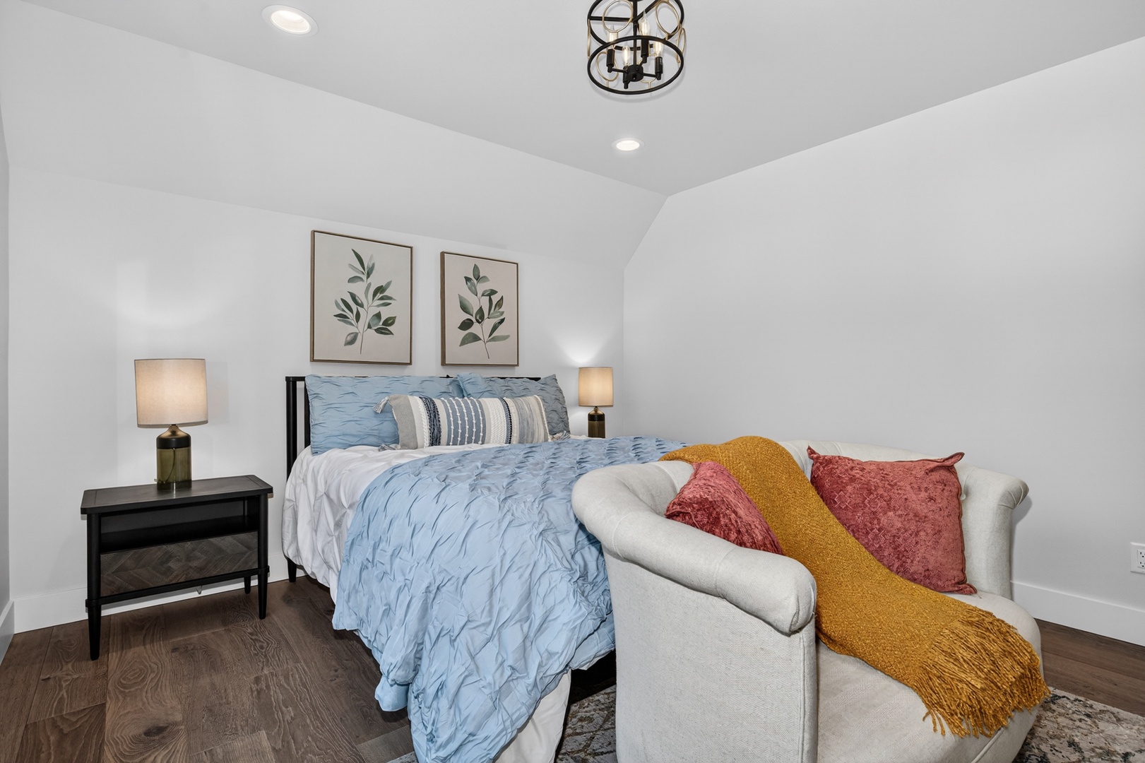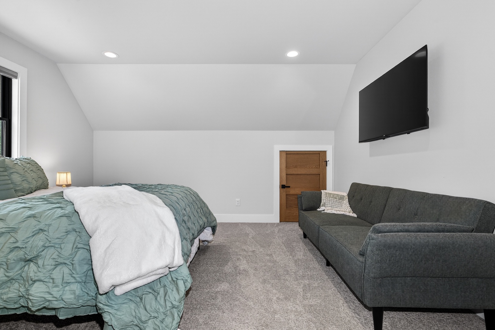 Four Pines at Maybelle Manor features 4 bedrooms and sleeping accommodations for up to 8 people; there is space for everyone on your invite list. Three of the four bedrooms are located on the upper level, all with luxurious queen beds and plenty of closet space for your vacation wardrobe. The loft connecting the bedrooms is open to the living room below and has a queen pull out sofa, the perfect space for young travelers to watch over the excitement of family gatherings. The owner suite on the main level provides dreamy views of Catfish Lake and a private exit to the covered porch outside. With an ensuite bathroom and walk-in closet, sweet dreams will come naturally while you vacation at the lake.